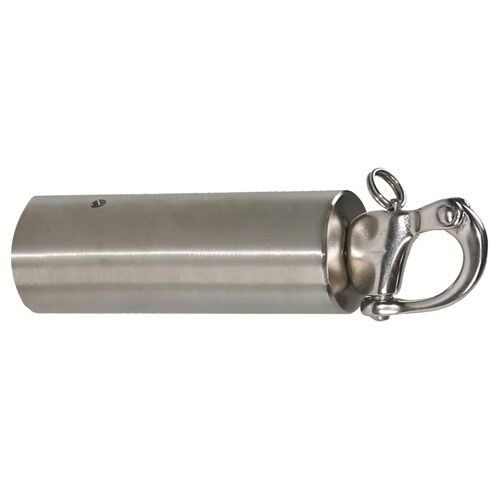 Die Endkappe mit Schnapphaken wird "lose" mitgeschickt. Diese können Sie dann selber passend auf das Absperrseil, mit zwei Madenschrauben montieren. Sie ist aus hochwertigem Edelstahl A2 - AISI 316 und kann dadurch im Außenbereich problemlos verwendet werden.